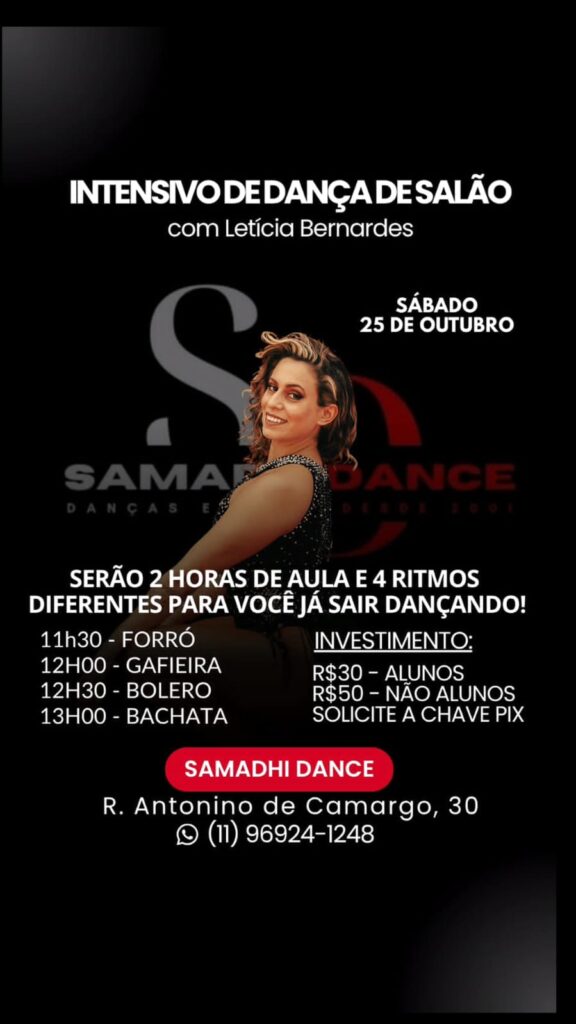 Sábado 25 de Outubro - Intensivo de Dança de Salão com Letícia Bernardes